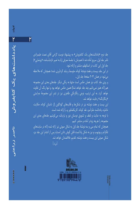 The third volume of Notes of a Bookseller continues Nasser Zeraati’s engaging narratives from his years of activity at the “House of Art and Literature” bookstore in Gothenburg, Sweden—a bookstore that for more than two decades served as a gathering place for writers, Iranian migrants, and lovers of culture and literature.